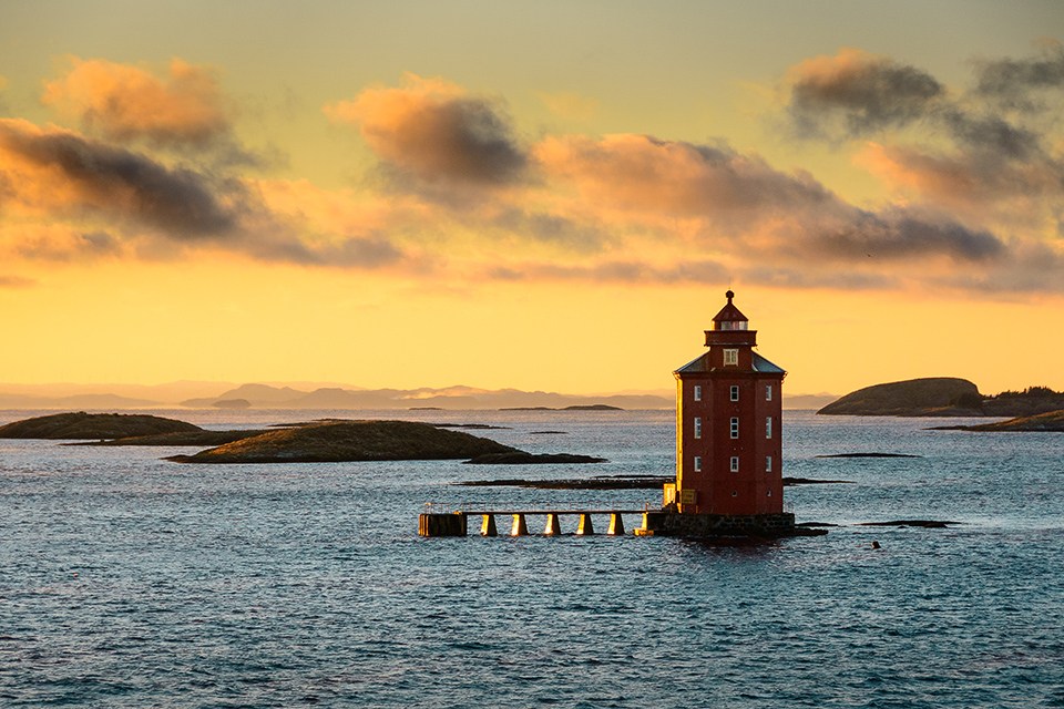 Auf dem Weg nach Ålesund, der Jugendstilstadt am Eingang zum Geirangerfjord, werden Einsteiger in einem Fotokurs vorbeifahrend an Schären und Inseln für die Aufnahme der Mitternachtssonne geschult. Sie lernen die Grundlagen der Fotografie, also die sichere und kreative Einstellung von Verschlusszeit, Blende und ISO-Wert. Bis das Schiff den Polarkreis überquert und die Sonne 24 Stunden scheint, haben Sie voraussichtlich die neuen Kenntnisse verinnerlicht und sind in der Lage schöne Fotos vom Polartag aufzunehmen. Ein Höhepunkt der Hurtigruten Seereise im Sommer ist die Fahrt des Postschiffs in den Geirangerfjord (gilt für Seereisen mit Abfahrtstermin im Zeitraum 2. Juni bis 1. September). Während der 16 km langen Seefahrt bis zum Dorf Geiranger am Ende des Fjords können Sie sofort das neue Fotowissen anwenden und wunderschöne Landschaftsfotos mit steilen Berghängen und tief abstürzenden Wasserfällen aufnehmen. Während der Landgänge in Ålesund machen Sie einige Architekturfotos der Jugendstilbauwerke. Um die fantastische Panoramaaussicht vom Hausberg Aksla aufzunehmen verweilen Sie tagsüber in Ålesund.
