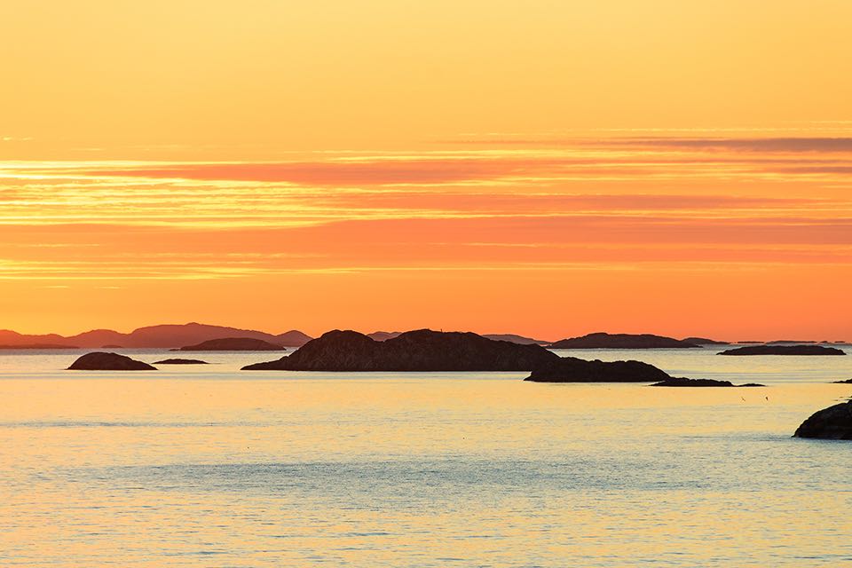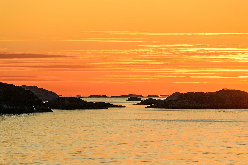 Die Polartagmetropole Norwegens und Ziel vieler Mitternachtssonne-Fotoreisen ist Tromsø. Hier nördlich des Polarkreises ist die Sonne vom 20. Mai bis 22. Juli täglich 24 Stunden ganz sichtbar. Gehen Sie daher so oft es Ihnen möglich ist auf das Schiffsdeck oder an Land, um das Farbspiel am Mitternachtshimmel beobachten, genießen und fotografieren zu können.